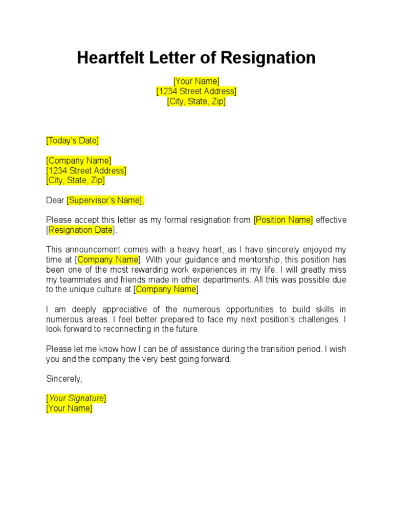 Looking for a thoughtful and sincere. A heartfelt resignation letter is a.